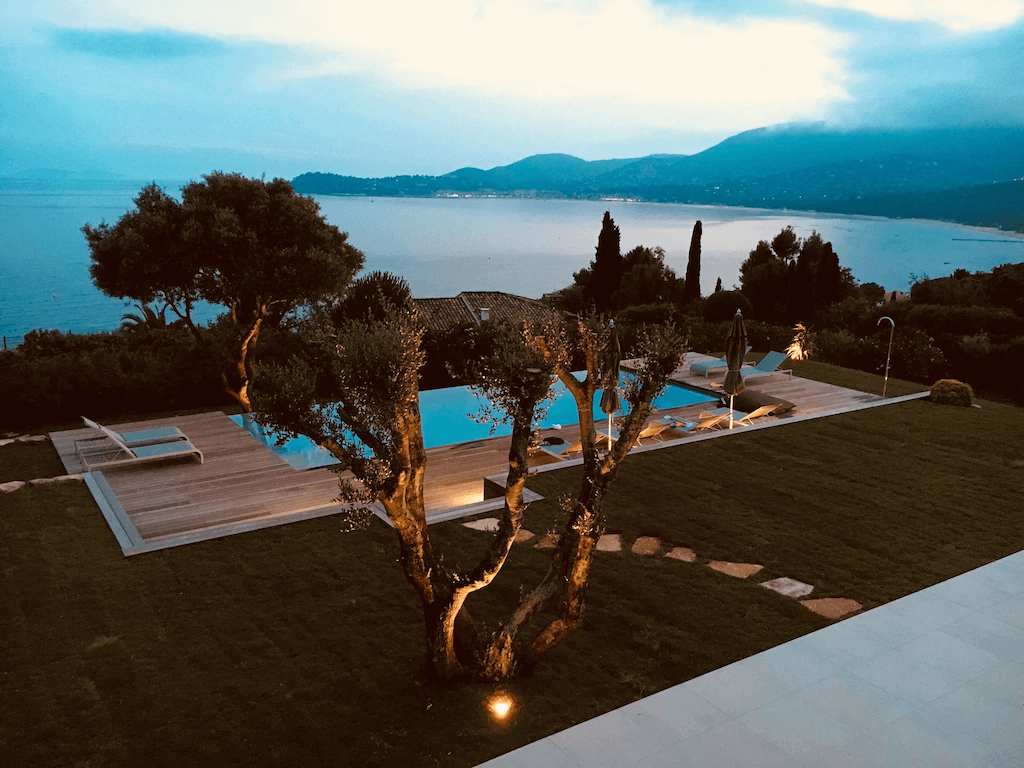 Exposée plein sud, la villa Camaal, édifiée sur un terrain de 2200 m2, offre une vue mer panoramique splendide.